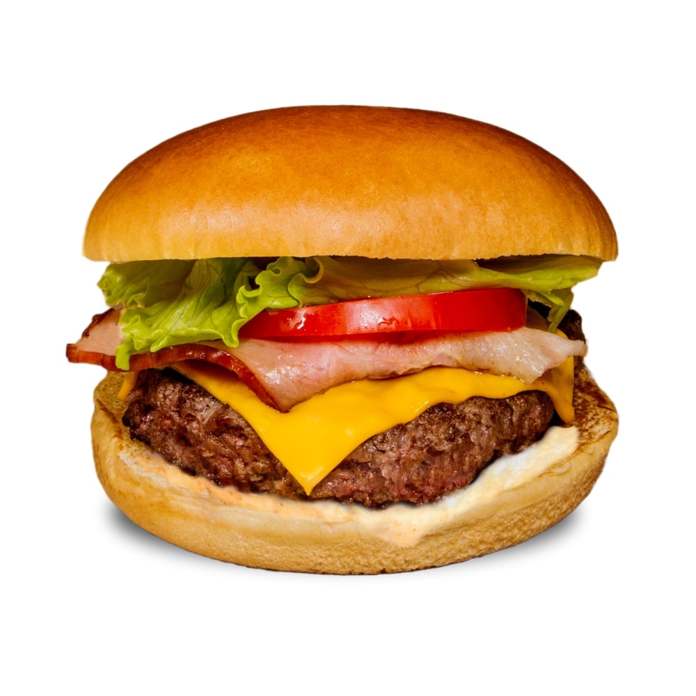 Ingrediente: carne vita Black Angus, bacon, branza Cheddar, salata Iceberg, rosii, gem rosii, sos Mo’s, chifla burger
