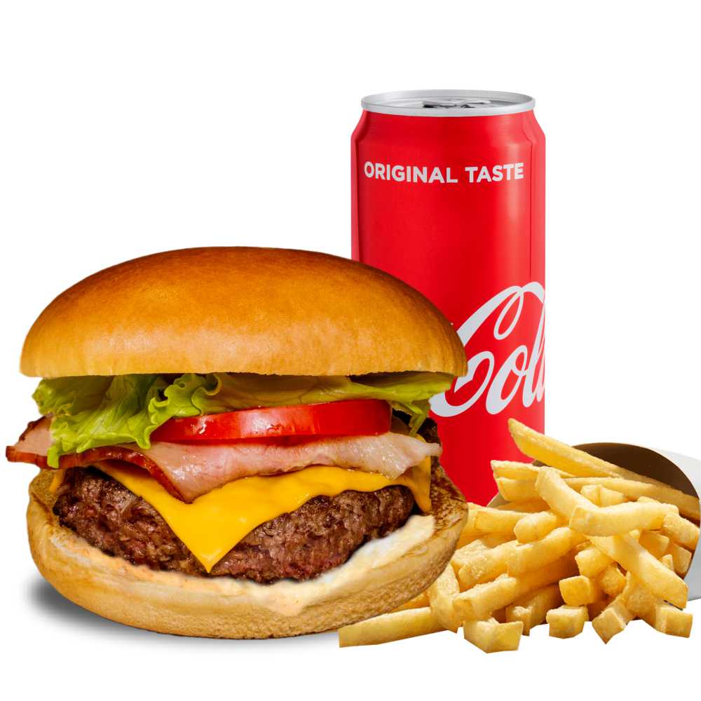 460 g Ingrediente: All American Burger 340 g + cartofi prajiti 120 g + suc sau apa (330 / 500 ml)