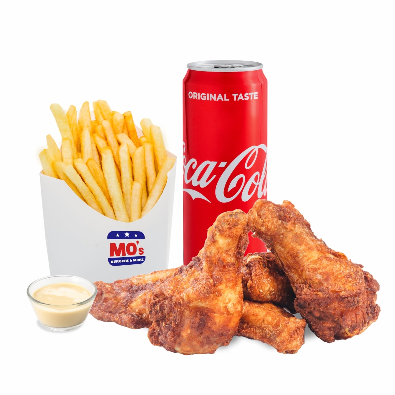 310 – 330 g Ingrediente: 7 aripioare de pui 170 g + sos inclus la alegere (20 – 40 g) + cartofi prajiti 120 g + suc doza sau apa (330 / 500 ml)