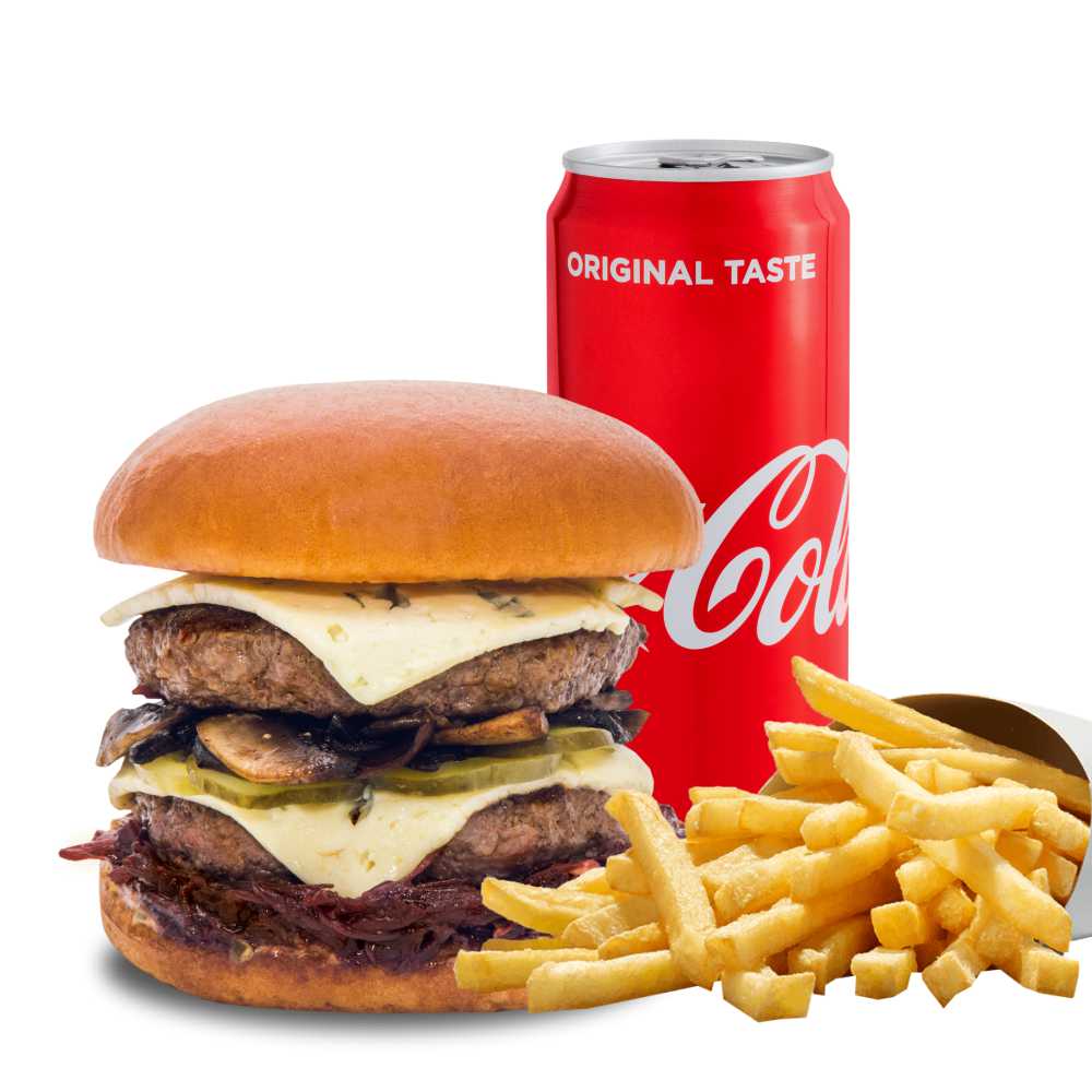 570 g Ingrediente: Double Big Mo Burger 450 g + cartofi prajiti 120 g + suc sau apa (330 / 500 ml)